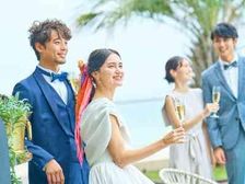プール付きウッドデッキガーデンは、パーティ会場と隣接しているから、パーティ中、自由に行き来ができる。乾杯をガーデンでしたり、デザートビュッフェやバルーンリリースなど、青空の下で海とプールを感じながら、ゲストとゆったりした時間を過ごせる。