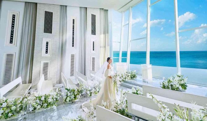 本番さながらのチャペル入場体験を実施。ドアが開き、バージンロードを歩く瞬間の空気感や演出を実際に体感できます。 写真では伝わらないリアルな空気を感じることで、結婚式当日のイメージが明確になります。