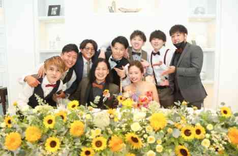 ひまわりが大好きな新郎新婦だからこそ、テーブルには一面のひまわりを使って「夏」が似合うコーディネートに!ゲストの皆様との距離感も近いからこそ、会話を楽しみたいお二人の希望を実現。当日はお二人の所へゲストの皆様が沢山集まってこられて、会話とお酒を楽しむ時間になりました。リゾート感じる空間で「おもてなし」を大切にするお二人だからこその時間でした!