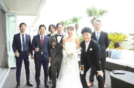 ベイサイド迎賓館静岡の名物ウェルカムパーティ!みんなと話せる時間を多くしたいお二人にはピッタリなヒトトキ。夏だからこそ、お酒も美味しく楽しい時間になりました! お二人に当日お会いするのは挙式開始のタイミングですが、挙式前に新郎新婦とお会い出来てゲストのテンションは早くも最高潮。緊張も和らいだ表情で挙式を迎えるお二人も印象的でした!