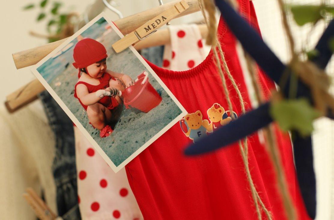 ロビーから会場に続く道を“ヒストリーロード”とし、幼少期から今までの思い出の品をお写真と共にお飾りしました。