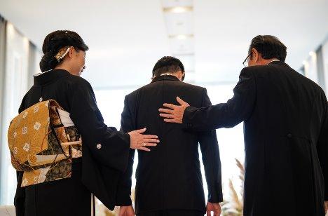 新郎様のご両親からのジャケットセレモニーでご新郎様の身支度が完成。両親から「言っておいで」と背中を押され、新郎様の気持ちが引き締まる瞬間。新婦様の入場ではお母様よりベールダウンセレモニーをしていただき、その後お父様とバージンロードへ。 お二人ともに、両親に見守られ新たな第一歩を歩む挙式に。