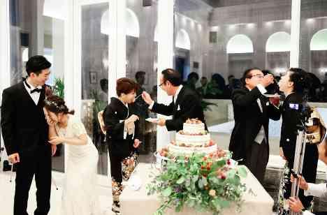 挙式の感動とはうって変って、披露宴は楽しさいっぱいに。 両家両親のサプライズでのお手本バイト、、、の直後にお相手の親御様へのバイトまで!ゲストの皆様もカメラを構え、全員の笑い声が聞こえてくるシーンになりました。