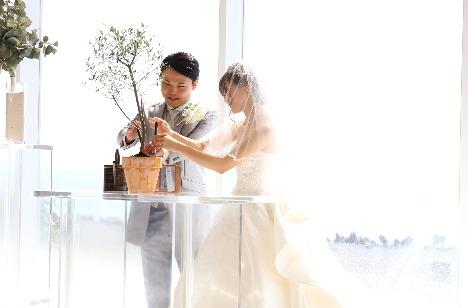 幸せのオリーブの木に土を入れていただき、植木を作成していただきました。 新郎新婦からも土を入れ、水をお二人で一緒に入れて頂くことでまず最初のBLENDの共同作業をして頂きました。これからの人生でも少しずつ育て成長していくように、一緒に成長し幸せな家庭を育んでいけますようにと願いを込めてまた、生まれた時のことやこれまでのこと、そしてこれからの想いも伝えていただきお二人の未来に残る言葉を頂きました。