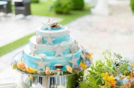 貝殻や、ヒトデなどをクッキーで作成し、夏らしさを感じさせるオリジナルのウェディングケーキにしました!会場の明るい装飾と合わせました。2人もゲストもウェディングケーキにとっても喜んでいました。サプライズバイトなども行い、ゲストの皆様とウェディングケーキを共有し、ご新郎ご新婦様ともにとても楽しそうでした。