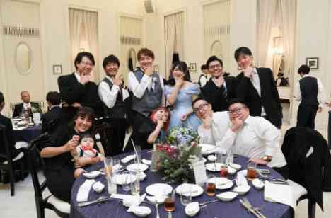 お色直し後は、各卓をテーブルラウンドしながらお写真撮影。ご新婦様がかわいいポーズカードをたくさん用意してくださったので、それをゲストの皆様に引いていただきました。 ポーズカードを引いてみんなでポーズをとりながらの写真撮影はとても盛り上がりました。 ゲストの皆様もどんなポーズ?と確認しながら楽しんでいただきました。