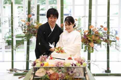 お2人の和装姿が映えるよう、竹を取り入れ装飾をしました。 さらに開放感のある雰囲気を存分に感じられるよう、 メイン席をガーデン側に設置しました。 自然光が差し込み、和の雰囲気とナチュラルなガーデンが マッチし、自然を感じることの出来る和やかな雰囲気の中でお過ごしいただけるお時間となりました。