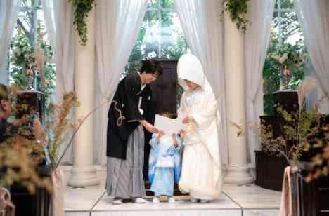 お2人のお子様も一緒に参加された挙式は家族の絆を感じる温かな時間となりました。 特に入場の瞬間から笑顔が溢れ、ゲストの皆さんも思わず微笑んでしまうくらいにハートフルな時間となりました。 お子様の可愛らしい姿がとても印象的で、お越しいただいたゲストの方々も緊張よりも温もりに包まれた雰囲気での挙式となりました。