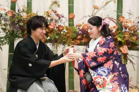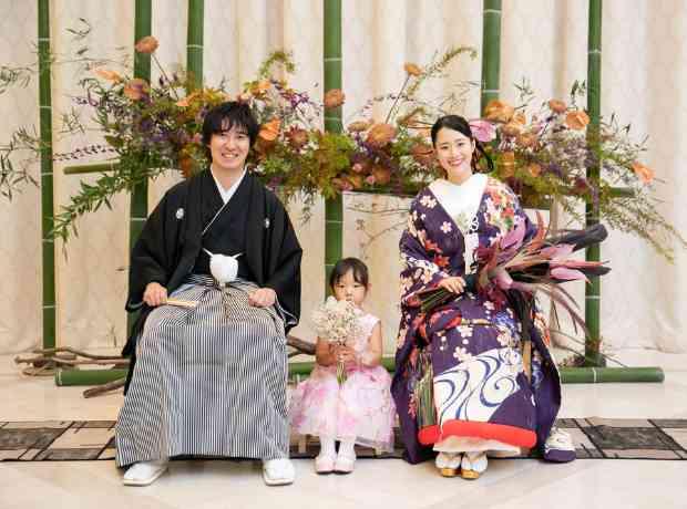 お2人の和装姿が映えるよう、竹を取り入れ装飾をしました。 さらに開放感のある雰囲気を存分に感じられるよう、 メイン席をガーデン側に設置しました。 自然光が差し込み、和の雰囲気とナチュラルなガーデンが マッチし、自然を感じることの出来る和やかな雰囲気の中でお過ごしいただけるお時間となりました。