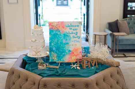 会場の装飾は、季節に合わせておふたりの好きな海をテーマにとってもオシャレな雰囲気になりました。大好きなゲストの方とゆっくり会話が出来る時間をおとりしながら、ゲストの方同士も仲良くなれるような楽しいゲームを行いました。たくさんの笑顔が溢れる時間になりました。