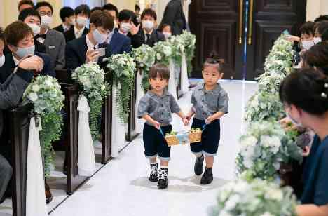お2人のご親族様ゲストには、お2人の大切な指輪を運ぶリングボーイをお願い☆彡 素敵な衣装をまとってしっかりとお二人の指輪を届けてくれました!会場内のゲストの皆様がほっこりされ、温かいお時間となりました。