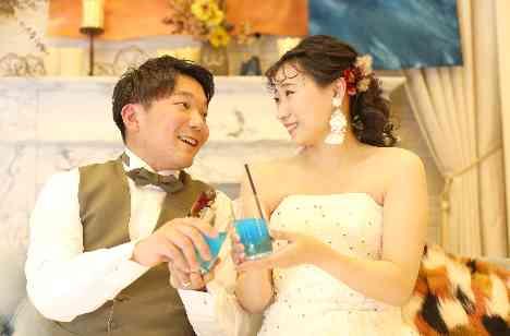 パーティーのテーマカラーは「青」装飾や演出等、青色で統一いたしました。披露宴の中では、ブルーキュラソーで作るオリジナルドリンクをご用意★ゲストの方にはとてもお喜びいただき、写真をたくさん撮ったり、オリジナルドリンクで乾杯したりとても盛り上がりました!おもてなし重視のおふたりならではの、工夫をいたしました。