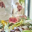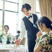 専属シェフが素材や調理方法など細部までこだわった特製のフレンチフルコースでおもてなし。アレルギーの対応や、思い出の食材・お料理などご要望に合わせてご提案します。披露宴会場と隣接したキッチンから最高の状態でお料理をゲストへお届けします。