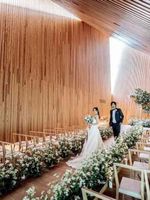 高さ14mの天井から自然光が降り注ぎ、木のあたたかみが感じられる内装は落ち着いた雰囲気で挙式が行えると好評。ㅤㅤㅤㅤㅤㅤㅤㅤㅤㅤㅤㅤ