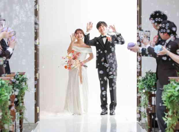 挙式中の演出としてご提案をさせていただいたサプライズキス。 誓いの言葉のあとの誓いのキスのワンシーンでは、 新婦様から不意打ちにキスをしていただきました。 新郎様はもちろんゲストの皆さまの心をぐっと掴まれた演出は、 愛おしさが溢れた記憶に残るシーンになりました。 笑顔の新婦様と照れた表情の新郎様が印象的でした。