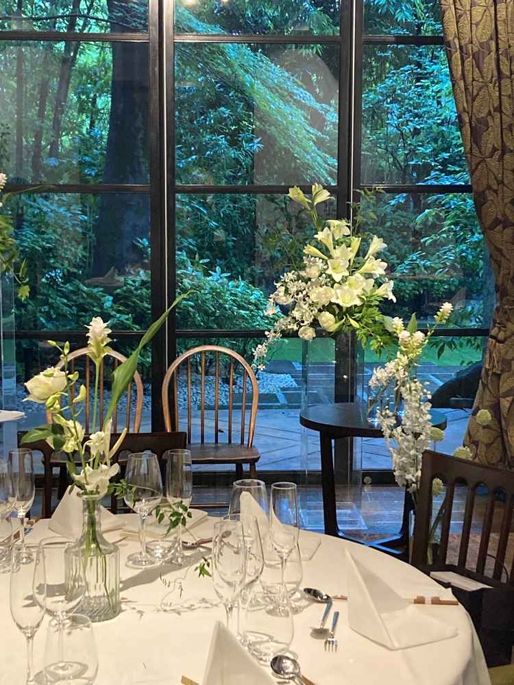 沢山の木々に囲まれた会場で緑がとても綺麗でした。チャペルと披露宴会場から見える緑の景色はゲストにも喜んでもらえると思える美しさでした。