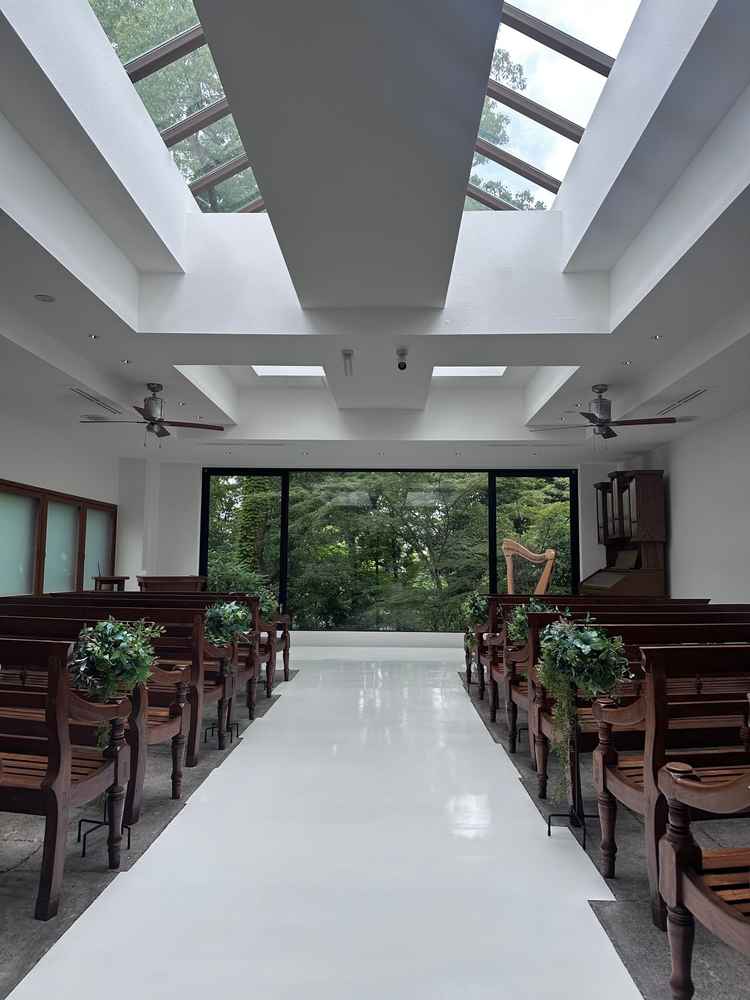 雰囲気はとても好みで理想のウェディングに近い挙式が挙げられそうだなと思いました。 緑が多いのが素敵です