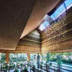 【瑞々しい緑に囲まれた印象的な独立型チャペル】天窓から降り注ぐ光で輝く「光のオブジェ」や日本古来の伝統技術の「左官仕上げ」が印象的。温かさと幻想的な雰囲気を併せ持つチャペルはゲストの記憶にも残るはず。
