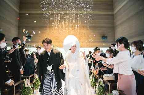 もともとは神社での神前式も視野に入れていたおふたり。 なぜ神前式がやりたいと思ったかをお聞きすると、和装が着たいからというご理由でした。 宗教色のないサンフィレール岡崎のチャペルがおふたりのスタイルにはぴったりではないですか?とお話しをして、オリジナリティあふれる和装人前式を選ばれました。 どんなお衣裳でも映えるチャペルはたくさんの新郎新婦様ゲスト様にご好評いただいております。