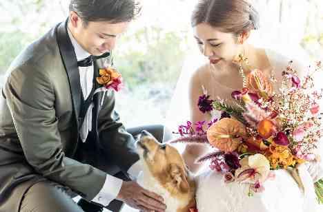 教会式での希望をお聞きすると、「愛犬にリングドックをしてもらいたい」とのこと。サンフィレール岡崎では、挙式前に新郎新婦さまと愛犬との写真の時間も十分に作ることができます。愛犬も普段見慣れない姿のおふたりを見て興奮していました。 挙式中は無事リングドッグの任務を果たして大活躍。ご家族様も喜んでくださいました。