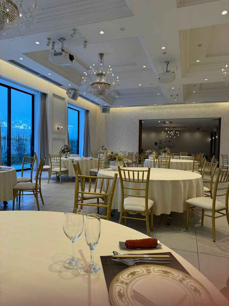 式場がだいぶ新しいみたいでとっても綺麗でした。プロジェクターがたくさん使用されていたり、ムービー見せていただいてここで挙げたいと思いました