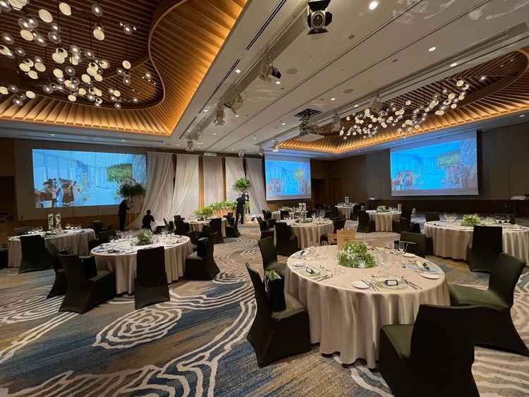 披露宴会場は高級感があり、他の式場に比べてとても広かった。 また、スクリーンも3枚完備していたためどの席にいてもストレスなく映像が観れると思った。 挙式会場は天井が一部窓になる演出ができたがそこまで魅力的ではなかった。