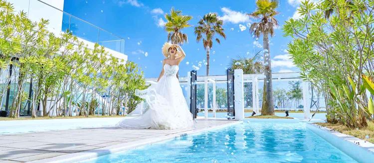 - オーシャンビューが広がる絶好のロケーションで、大切なゲストと心ゆくまでリラックスした時間を過ごしませんか?当館は全ての邸宅にプライベートガーデンを完備。ゲストと一緒に楽しむウェルカムパーティや、青空の下でのデザートブッフェなど、演出は自由自在です。まるで海外リゾートを訪れたかのような非日常空間で、お二人らしい笑顔溢れる結婚式を全力でサポートさせていただきます!