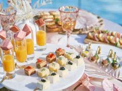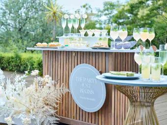 ガーデンを活かした演出も豊富にご用意。プールへのドロップ&フライは天高く舞う風船が美しく、写真映えも抜群!デザートビュッフェやBBQなど、開放的な雰囲気だからこそ会話も弾むおもてなしを。万が一の雨天でも、全邸宅に専用ラウンジを完備しているため、安心して当日を迎えられるのも魅力。