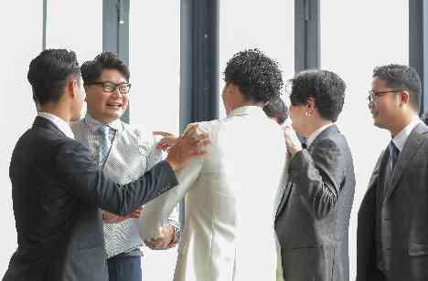 結婚式というとどうしても主役のお二人と見届けるゲストの方という構図になりがちなイメージがあります。ただ、そうではなくていつも通り・今まで通りにお二人とゲストの方が話して盛り上がれる、そんな空間を創ることを目指しました。準備期間ではどのような進行で進めていくことでお二人もゲストの方もよりリラックスできるかを考え、当日ではゲストの方にスタッフから声をかけずとも自然に写真のような光景が広がっていました。