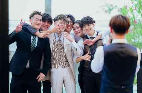 会場内では撮ることの出来る雰囲気の変化に限度が出てしまうため、お二人はテラスにデザートビュッフェをご用意されました。好きなモノを取ることが出来る楽しさとただ座っているだけではなく移動しながら食べられる楽しさで、皆様はすごく盛り上がってくださいました。お写真もよりワイワイした雰囲気でも撮影が出来、距離感も自然と近くなっていました。