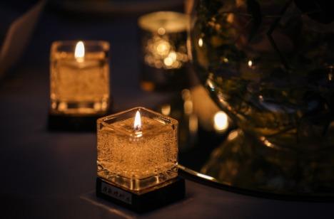 ご披露宴の結びに、エンドロールを流すことは定番化してきましたが、そのあとに、クレールストーリアのセレモニーを行いました。火のともったキャンドルに蓋を被せた瞬間。ゲスト様ひとりひとりに向けてメッセージが浮かび上がります。ゲストの皆様も思わず涙を流された方もいらっしゃいました。おふたりからの想いが伝わるサプライズ感のある演出ができたらと思いご提案させていただきました。
