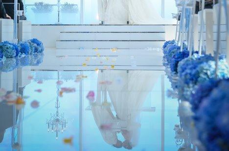 ゲストと創り上げる人前式スタイルを選んだおふたり。 ご新郎様は入場後にジャケットセレモニーを。学生時代に学ランをお母様が袖を通してくれていたので、サプライズでお父様に依頼をしました。 ご新婦様が歩く前にはかわいいフラワーガールが先導をしてくれました。 バージンロードにはおふたりの姿と一緒に青空も映り込みます♡