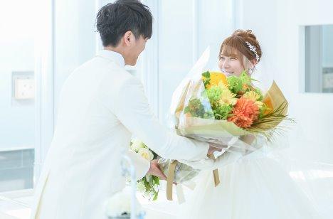 ご新婦様のことが大好きなご新郎様が挙式前にサプライズを。 ブーケのお花をギリギリまで迷っていたご新婦様。どちらも大好きなお花だったので、選択されなかったお花を盛り込んだお花束とともに、ご新婦様への想いをお伝えいただきました! 挙式会場の扉が開いた時の驚いたご新婦様の表情はとても印象的でした♡