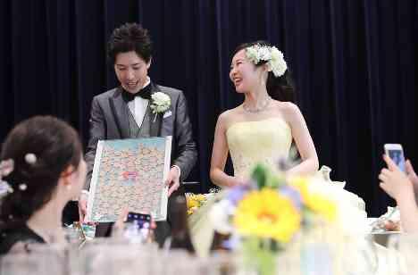 テーブルラウンドでは、唯一ゲストの皆様とひとりひとり触れ合える、お2人が楽しみにしている時間。お打ち合わせでは、ゲストの皆様と触れ合える、カタチに残り続けるものは・・・と何にしようかたくさん悩みましたが、ゲストの皆様からチップにメッセージをご記入頂き、ボードに入れて頂く「スタードロップス」にしました!会場にいる皆様がここにいる証として、世界にひとつだけの作品が完成いたしました。