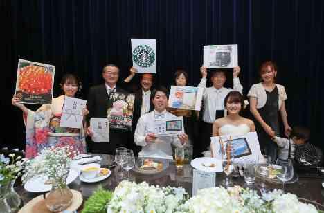 たいせつなゲストの皆様に楽しんでいただきたい!そんな思いでおふたりが企画をしてくださった全員参加のお楽しみ抽選会。 受け付けで手作りのくじをお配りして、披露宴中盤で当選発表をしました。 おふたりがゲストのことを考え厳選して用意した豪華景品をかけて 両家ご家族みなさまでたのしんでいただきました!