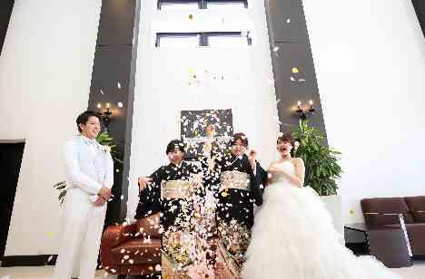 青空の元、大切なご家族様に祝福され アットホームな人前式となりました。 お天気にも恵まれ開放的な明るいチャペルでは ゲストの皆様との距離も近く皆様に見守っていただきながら誓いを立てていただきました。 リングボーイ・フラワーガールも登場し 両家ご家族様にも自然と笑顔が。 家族挙式ならではの笑顔溢れるあたたかいお式となりました。