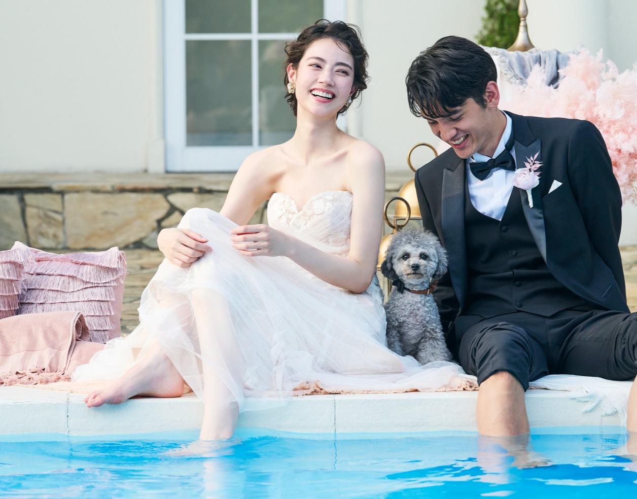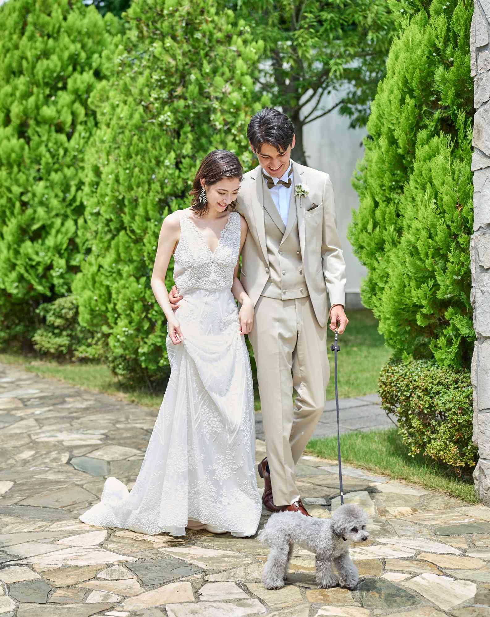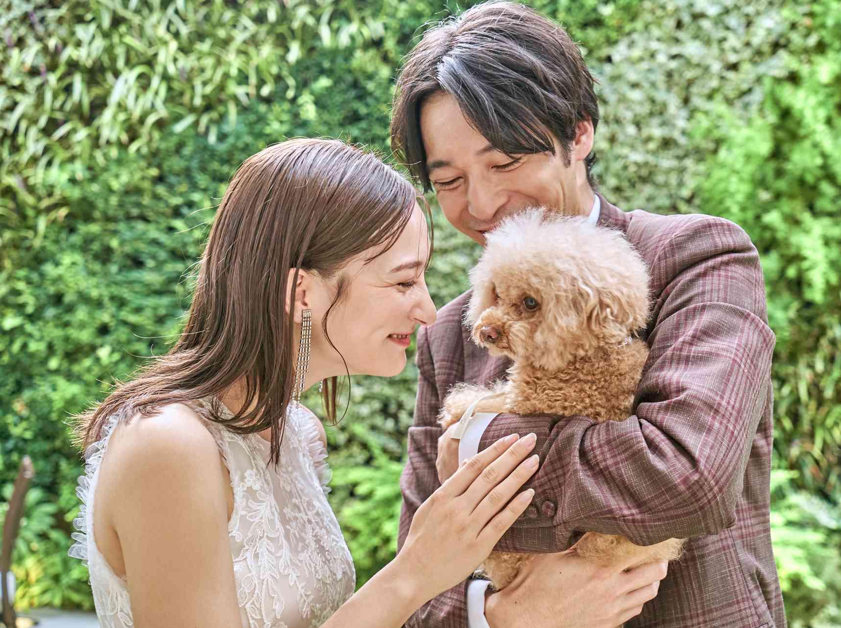 ガーデン付貸切邸宅を貸切可能だからこそ、挙式から披露宴まで1日を通して大切なペットと過ごすことができます。チャペルでのリングドックや証明書への肉球署名はもちろん、ウエルカムドック等も可能です。
