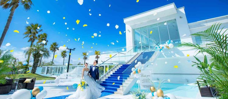 - 海外リゾートウエディングを思わせるロケーションにふたりは勿論、列席するゲストの皆様も感動すること間違いなし。 チャペルの側面は窓ガラスで開放感抜群。 陽の光がチャペル全体に広がる中で挙げる挙式は、 ふたりの新たな船出を光で包み込みます。挙式後は、感動にひたりながら空と海を見渡す大階段へ。 フラワーシャワーと笑顔の祝福を浴びてゆっくり歩む階段は、ふたりを永遠の幸せへと導きます。