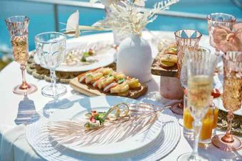 お料理はゲストへの最高の「おもてなし」。どの年代にも喜んでいただけるよう味はもちろん盛付けや香り、音や食感など五感で楽しめる、フレンチベースで和のテイストを取り入れたキュイジーヌをご用意。アレルギーや食事制限にも個別対応なのでゲストも安心!