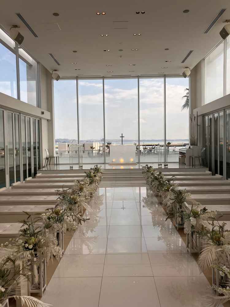 海が眺められる会場で海が大好きな私たちにはぴったりだなと思いました。チャペルからも披露宴会場からも海が見えて良かったです。