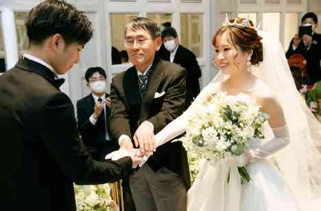 もともとは、ご披露宴のみで予定をされていましたが、ご親族様にだけ、チャペルにてサプライズで挙式セレモニーを行いました。花嫁の人生の道を表すといわれていいるバージンロードは、お父様と一緒に過去を振り返りながら歩みました。お父様と新婦様がゆっくりと足並みをそろえて歩んでいかれる姿が、非常に印象的でした。