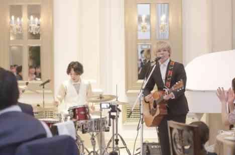 フェスやライブに行くのが大好きなお二人。ご新郎様はずっとバンドでドラムをされておりました。新婦様はドラムをたたく新郎様のことが大好きで、この結婚式でのメインと言っても過言ではないくらい、バンド演奏の時間をお二人ともに楽しみにしてくださっていました。ゲストの皆様からの大きな拍手とともに、非常に盛り上がり、素敵なシーンになりました。