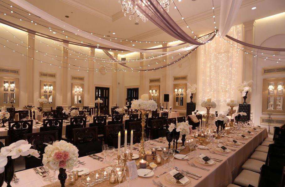テーブルコーディネートやお花にこだわりがあるお客様。 おふたりの好きなカラーである【黒×ゴールド×白】を使用し、おふたりらしいかっこ良くてゴージャスな空間に!