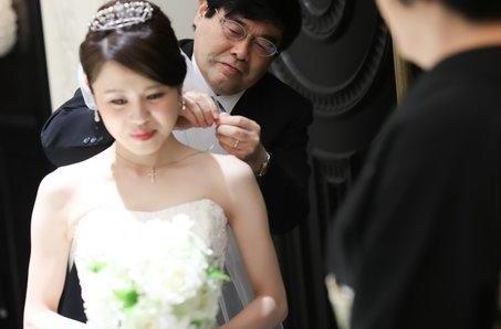 学生の頃にお父様から頂いた大切なネックレス。今まで肌身離さず身につけていたネックレスを当日はお父様につけて頂きました。