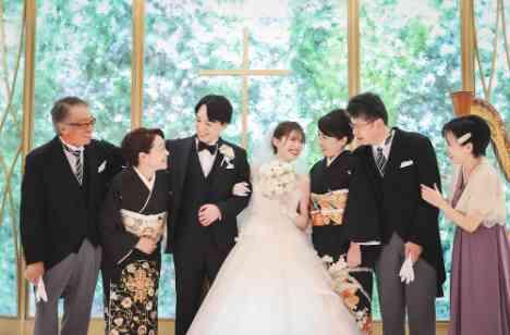 ゲストの皆様に楽しんでもらう結婚式をしたいと今日までたくさんのご準備をされて迎えられた当日。一番楽しんでほしいとお話されていたご両親に向けて、花婿、花嫁姿のお披露目を考えていらっしゃいました。ファミリーミートに選ばれた場所はチャペル。おふたりのとっておきの運命の一着が映えるグリーンウォールの前の緊張されながらご家族に振返っていただきご対面。思わず笑顔とあたたかい涙が溢れ出しす瞬間となりました。