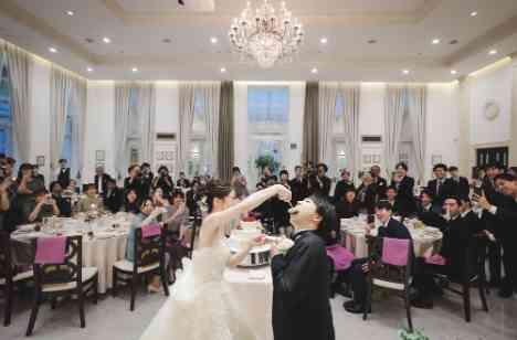 ご披露宴はおふたり手作りのオープニングムービーからスタート!ガーデンから入場されたおふたりはゲストの皆様のテーブルをまわってご挨拶♪披露宴前半のメインイベントとしておふたりのケーキ入刀やファーストバイトの進行をご準備されました。新婦から新郎へは大きなスプーンをご用意♪愛情の分だけ大きくすくって新郎のもとへ!ゲストの皆様から大きな声援をいただきながら頬張っていただきました。
