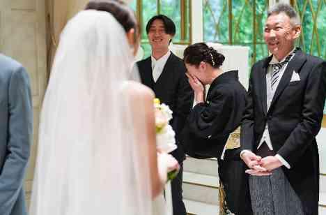 当たり前に傍にいて、支えてくれたご両親とご兄弟様。 今日という晴れの日を誰よりも心待ちにしてくれていたご家族様。 ファミリーミートに選ばれた場所はチャペル。おふたりのとっておきの運命の一着が映えるグリーンウォールの前で緊張されながらご家族に振返っていただきご対面。お母様の溢れる涙に目頭を熱くするおふたり。温かな笑顔で見守るご兄弟様と共に過ごしたとっても温かいお時間となりました。