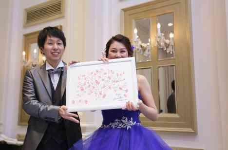 会場の雰囲気はお二人が好きなブルーを中心に装飾致しました。お二人らしさをもっと出したくて、ゲストとお二人で桜のウェディングツリーセレモニーを行いました。ご結婚式が結んだあとにも、思い出が形となり残りました。