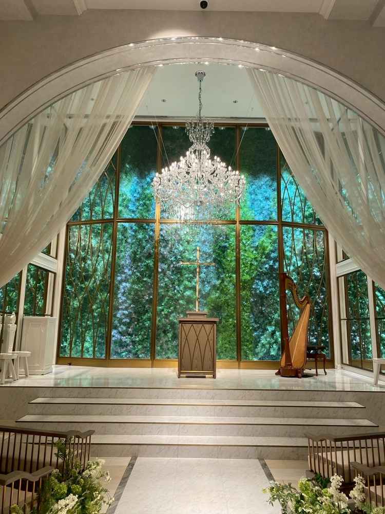 チャペルも綺麗で天気に左右されることなく、緑が映える点、また外観からエレガントな印象で式場としての高級感を感じる