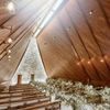 【ウッドデザイン賞2023受賞】「光のトライアングル」をコンセプトに2023年2月にリニューアルしたチャペルは木の温もりと石造りの祭壇が調和。圧巻の天井高と降り注ぐ光に包まれながら神聖な挙式を体感して